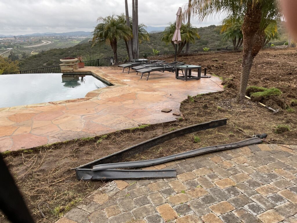 • Irrigation: 25 caps installed; 12 sprinkler heads relocated; irrigation scope included to ensure the system still functions cleanly after the lawn is removed • Drainage: 3" SDR35 drain line installed to manage runoff and reduce the chance of surface pooling