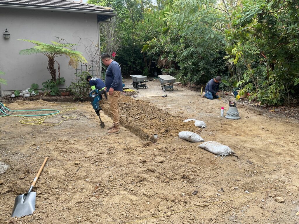 - Utilities: Run a new underground ¾″ yellow PE (polyethylene) gas line with factory-rated risers, installed per SDG&E trench depth and separation standards, pressure-tested to code and terminated with an accessible shut-off valve at the fire pit; install a Pro-Trade 150W stainless-steel transformer and low-voltage wiring for path and uplighting.