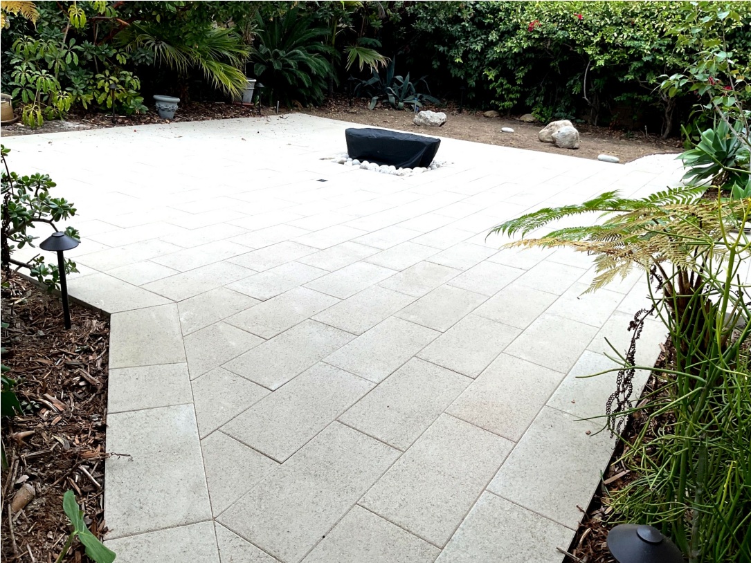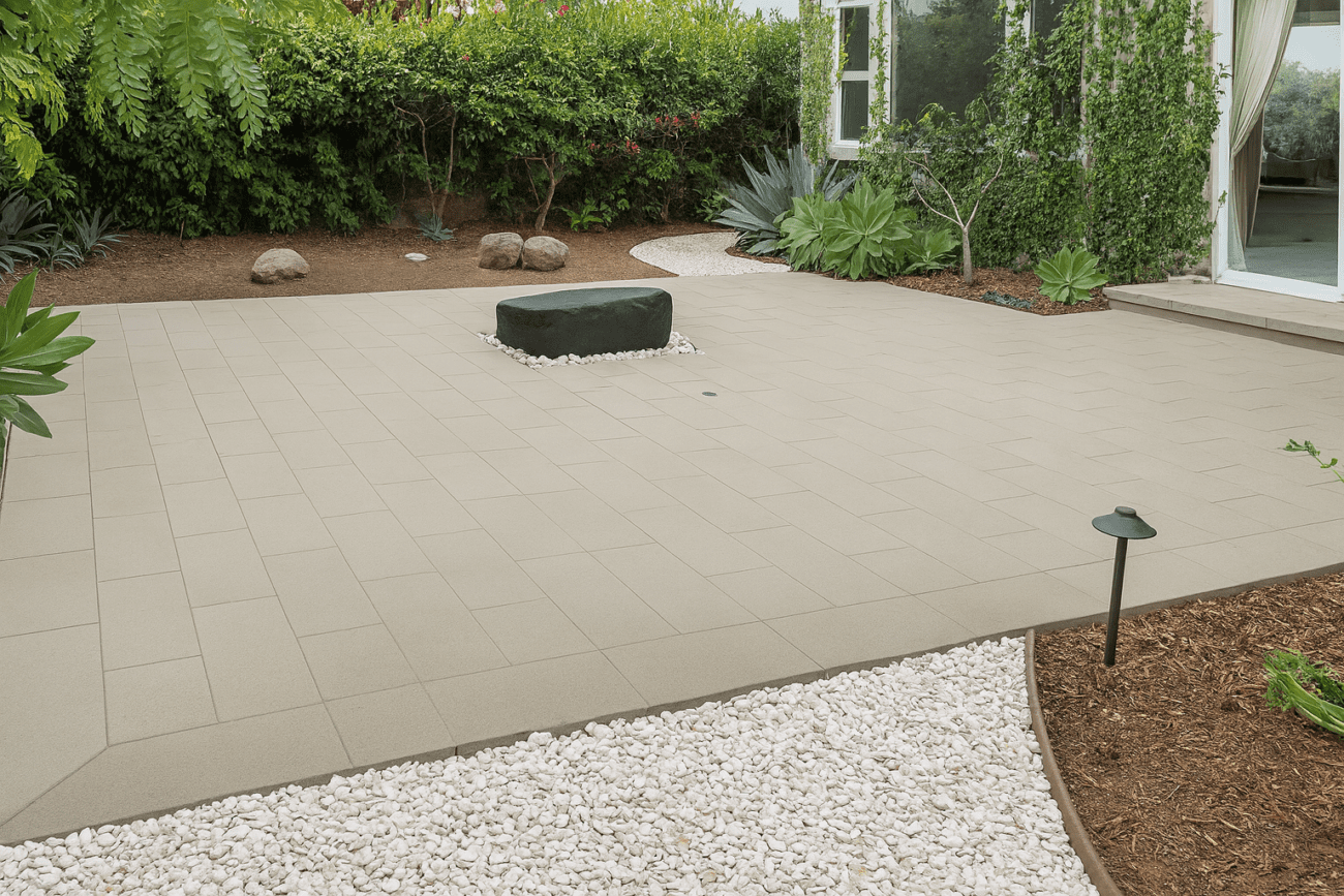 - Usable Space: Convert ~750 sq ft of bare dirt into a functional porcelain paver patio with an integrated fire pit lounge zone sized for hosting.