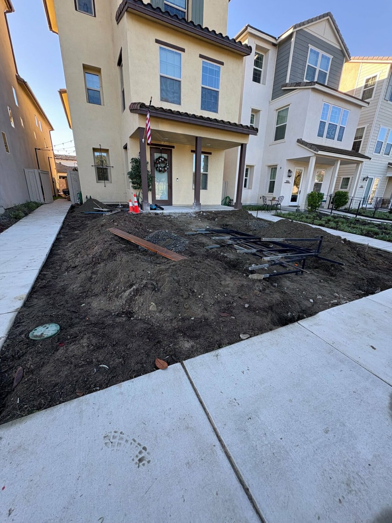 This project took approximately 9 calendar days from first day on site through final sign-off. The crew ran demo and drainage concurrently to keep the schedule tight. Most front yard projects of comparable scope run 1–3 weeks depending on demo volume, drainage complexity, and HOA review timing.