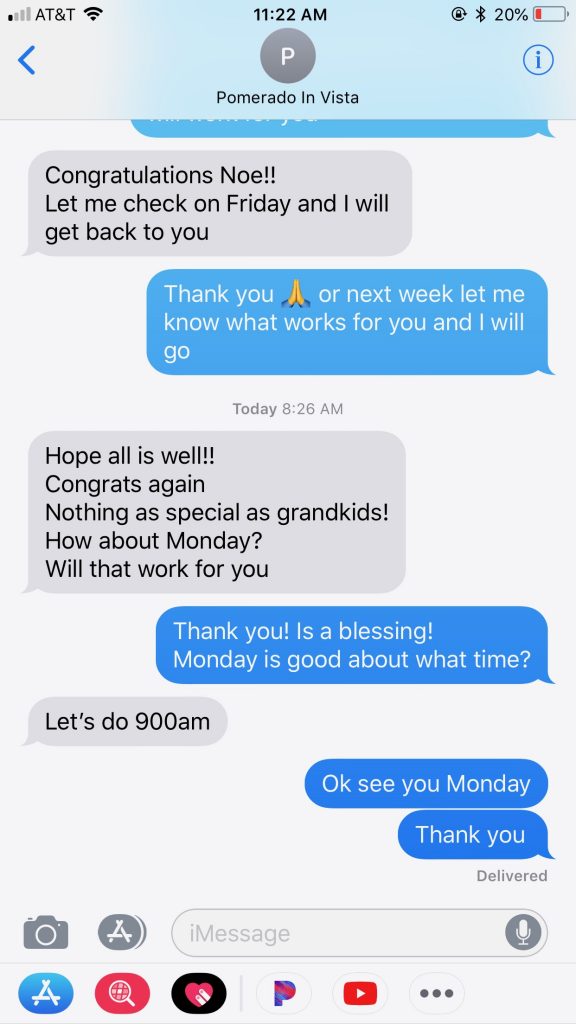 6/24/18: The customer finally responds saying he will be home the following Monday, June 25th.