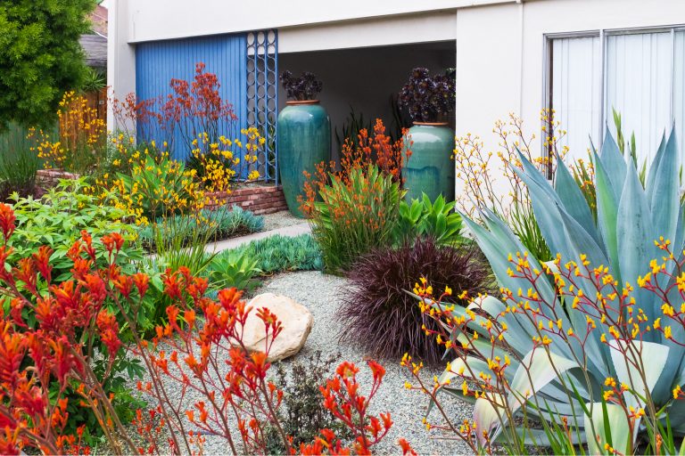 Alternatively, you might consider installing a small, artificial grass lawn to get the benefits of having a lawn without the irrigation and maintenance needs, such as watering, mowing, aerating, weeding, edging, and fertilizing.