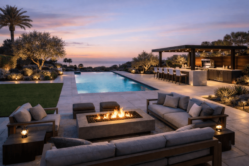 This checklist is built for homeowners planning a real front yard + backyard transformation (pavers/porcelain, walls, outdoor kitchens, fire features, pergolas/patio covers, lighting, drainage).