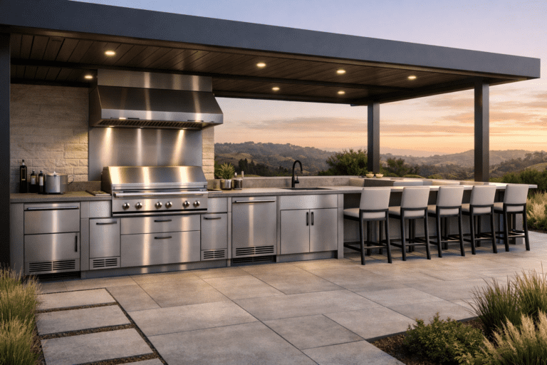 Outdoor Kitchen Cabinets & Storage (San Diego 2026): Stainless vs Polymer vs Aluminum, Coastal Specs, Hardware, and Ventilation