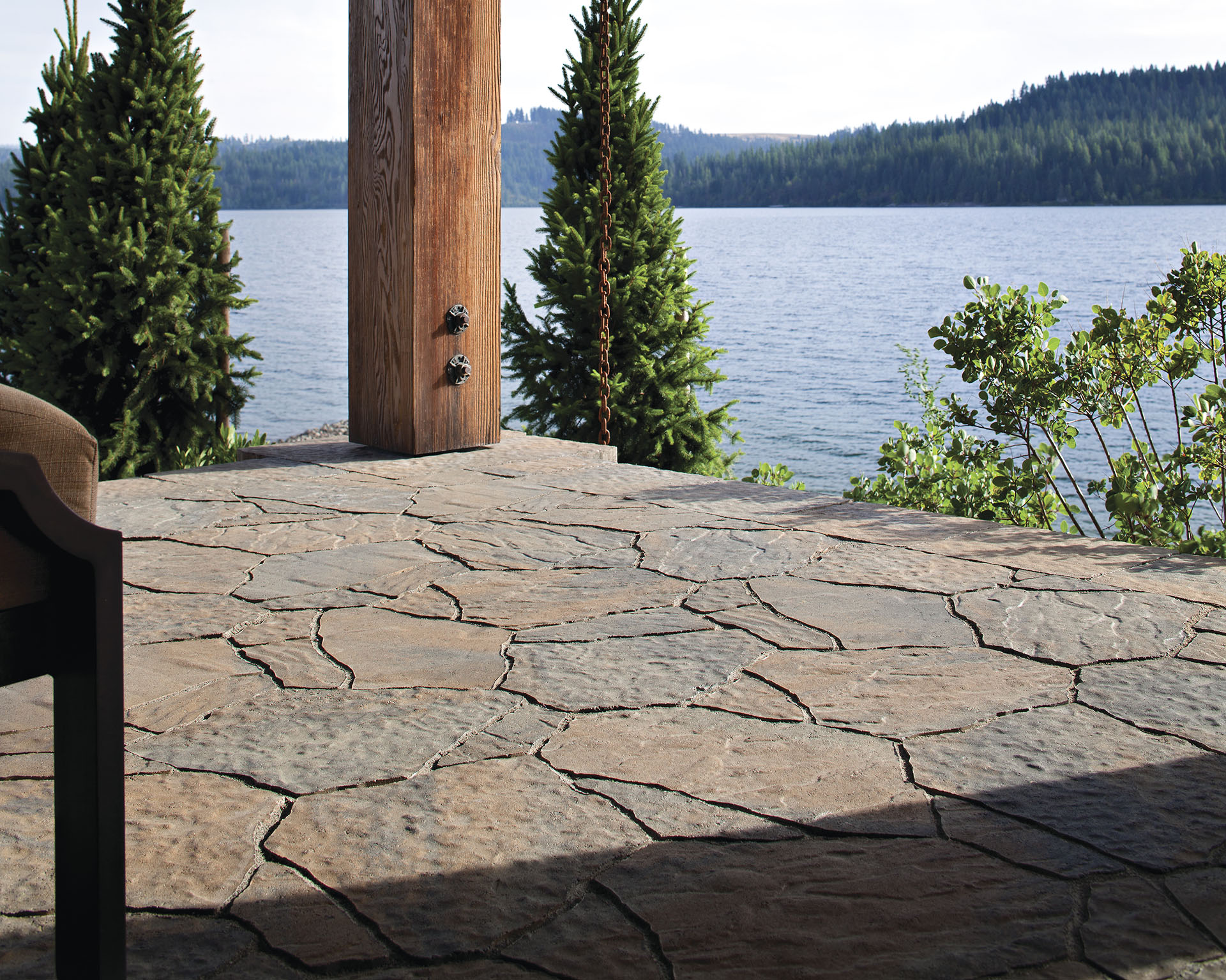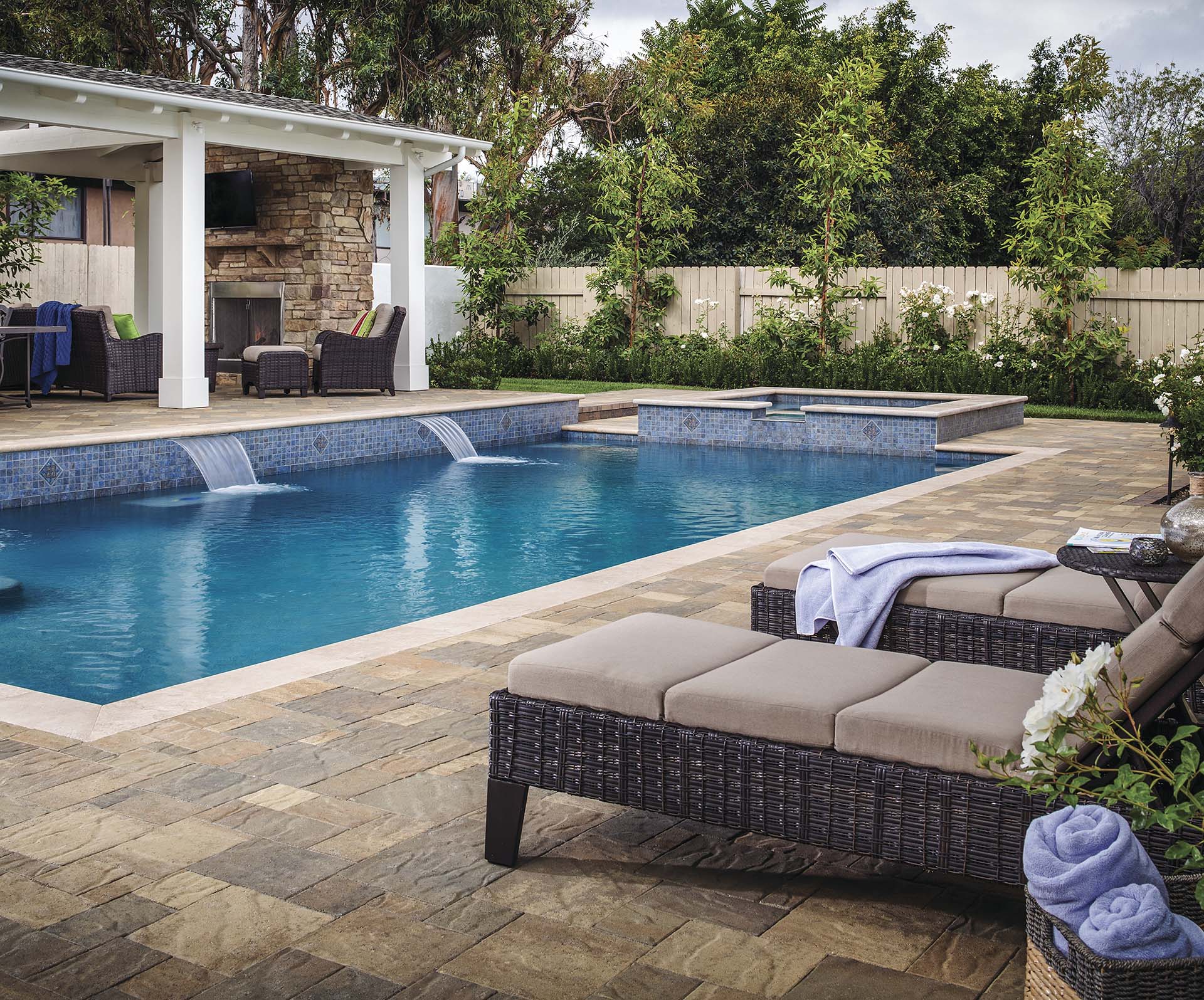 Reminiscent of natural flagstone, these pavers are perfect next to any water feature or pool.