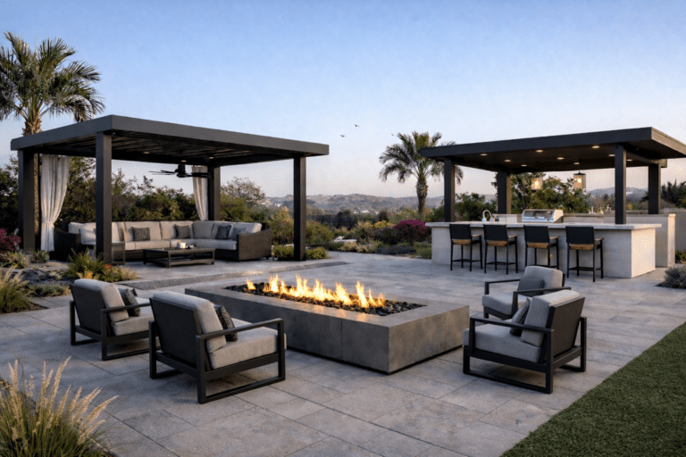 | Backyard Core | $75k–$125k | Patio + cover/pergola + compact kitchen + fire feature + basic lighting + drainage touch-ups |