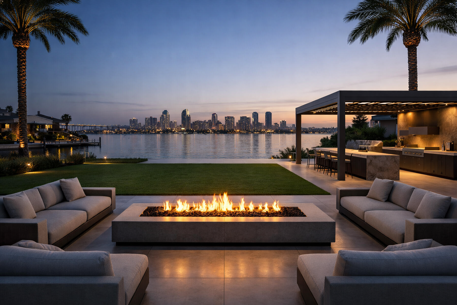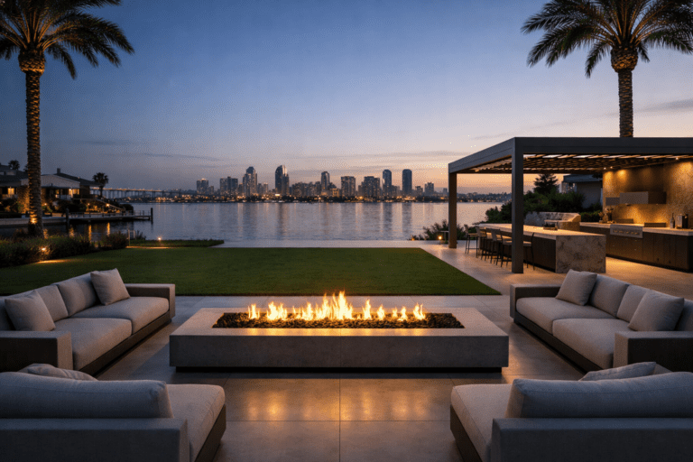 In Coronado Village, Coronado Cays, Coronado Shores and coastal-facing pockets, we design-build complete outdoor environments: porcelain/paver patios, driveway/entry upgrades, louvered pergolas or engineered pavilions, outdoor kitchens (gas/electric), privacy and noise control (walls/screens/hedges), low-glare lighting scenes, drainage/underdrains, motorized screens, outdoor room heating, and estate outdoor A/V coordinated with City permits and HOA/ARC review when applicable.