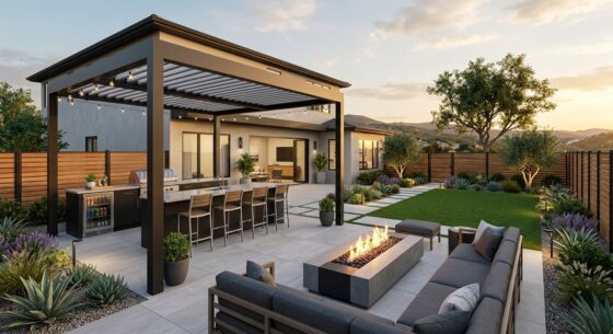 | Good: Entertaining Core | 1,000-1,600 sf porcelain/paver patios & paths; 12′-16′ pergola; masonry outdoor kitchen (base appliances); low-glare lighting starter; drainage basics; planting/irrigation refresh. | $110k–$220k+ |