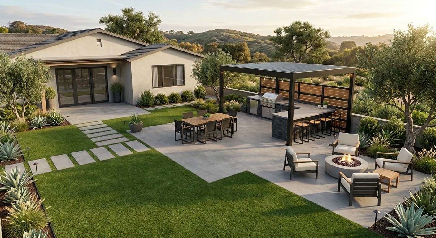 • WUI/fire zones: In Fire Hazard Severity Zones (Poway, Olivenhain, RSF, Santaluz, etc.), pergola and pavilion materials must meet ignition-resistant requirements. We specify compliant materials from the start.